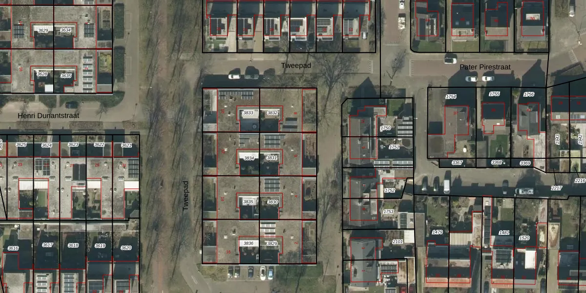 Tweepad 6 is gelegen op kadastraal perceel GLE01A3831. Deze kadastrale aanduiding is uniek en wordt gebruikt door het Kadaster om eigendomsrechten en andere zakelijke rechten vast te leggen. Het perceel maakt onderdeel uit van de kadastrale gemeente Goirle.