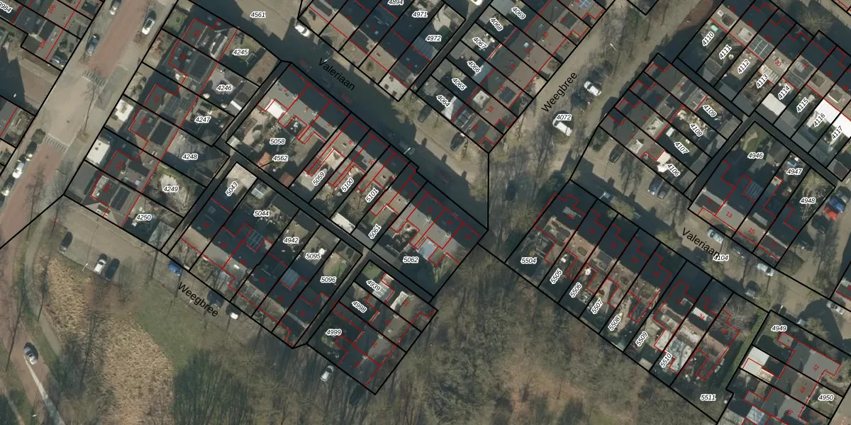 Het perceel waarop Valeriaan 16 staat heeft een oppervlakte van 380 m². Dit is een groot perceel. De perceeloppervlakte wordt geregistreerd door het Kadaster. Gedetailleerde informatie over de maten van dit perceel kunt u vinden in het rapport Kadastrale kaart met maatvoering van Valeriaan 16.