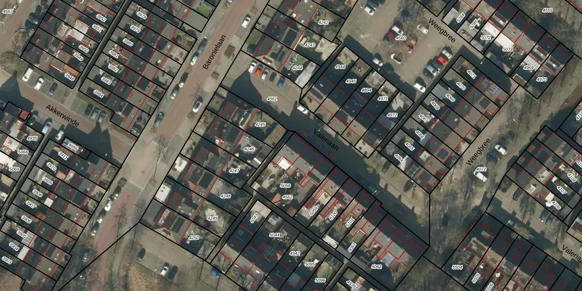 Het perceel waarop Valeriaan 2 staat heeft een oppervlakte van 434 m². Dit is een groot perceel. De perceeloppervlakte wordt geregistreerd door het Kadaster. Gedetailleerde informatie over de maten van dit perceel kunt u vinden in het rapport Kadastrale kaart met maatvoering van Valeriaan 2.