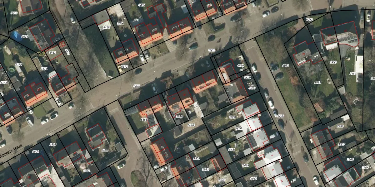 Het perceel waarop Van Malsenstraat 36 staat heeft een oppervlakte van 1205 m². Dit is een zeer groot perceel. De perceeloppervlakte wordt geregistreerd door het Kadaster. Gedetailleerde informatie over de maten van dit perceel kunt u vinden in het rapport Kadastrale kaart met maatvoering van Van Malsenstraat 36.