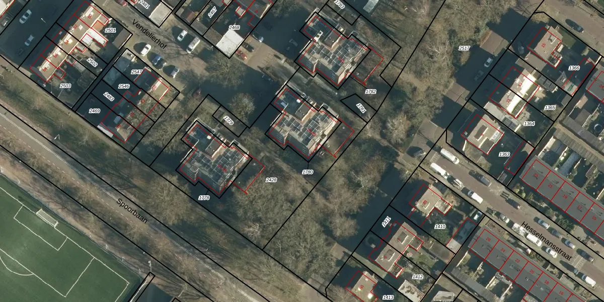 Het perceel waarop Vendelierhof 61 staat heeft een oppervlakte van 335 m². Dit is een groot perceel. De perceeloppervlakte wordt geregistreerd door het Kadaster. Gedetailleerde informatie over de maten van dit perceel kunt u vinden in het rapport Kadastrale kaart met maatvoering van Vendelierhof 61.