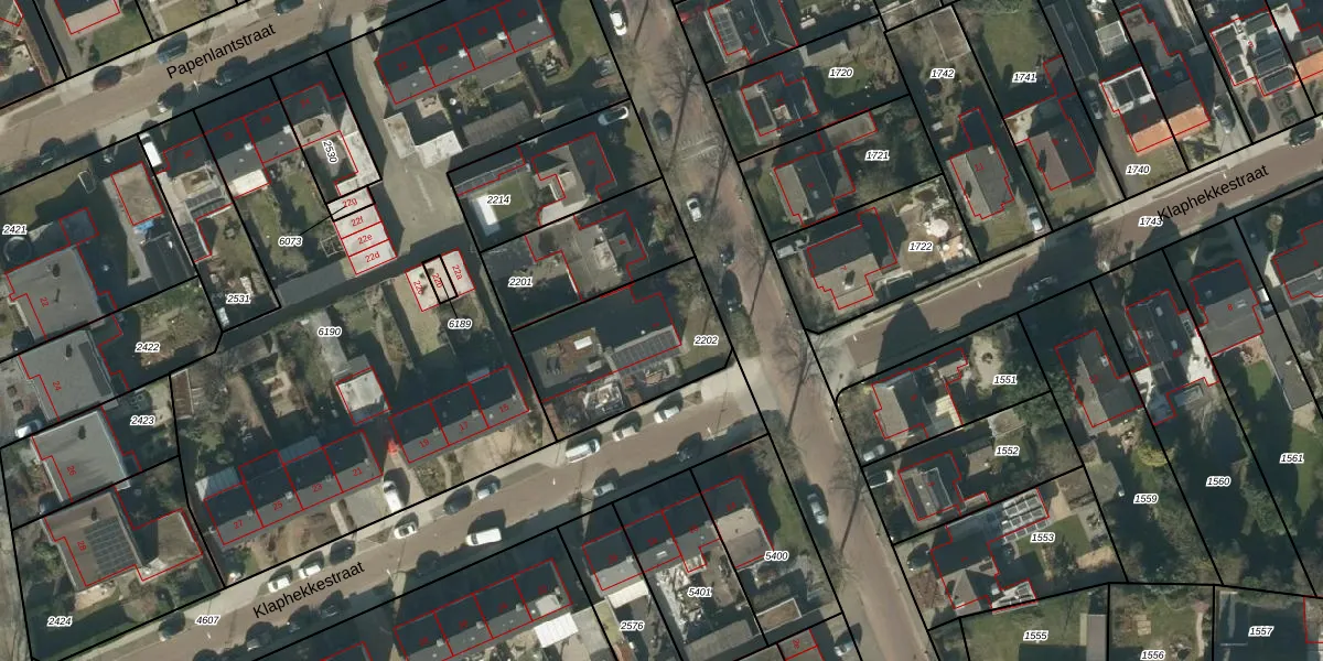 Gebruik de zoekbalk of klik op een perceel voor informatie over de adressen binnen dit perceel.