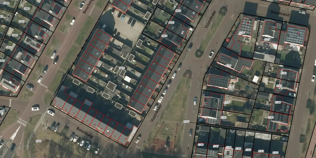 Vuurvlinder 9 is gelegen op kadastraal perceel GLE01E5604. Deze kadastrale aanduiding is uniek en wordt gebruikt door het Kadaster om eigendomsrechten en andere zakelijke rechten vast te leggen. Het perceel maakt onderdeel uit van de kadastrale gemeente Goirle.