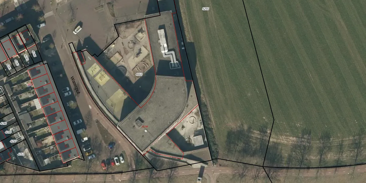Het perceel waarop Waterput 32 staat heeft een oppervlakte van 4110 m². Dit is een zeer groot perceel. De perceeloppervlakte wordt geregistreerd door het Kadaster. Gedetailleerde informatie over de maten van dit perceel kunt u vinden in het rapport Kadastrale kaart met maatvoering van Waterput 32.