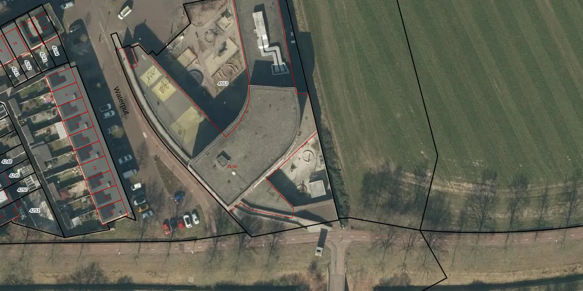 Het perceel waarop Waterput 34 staat heeft een oppervlakte van 4110 m². Dit is een zeer groot perceel. De perceeloppervlakte wordt geregistreerd door het Kadaster. Gedetailleerde informatie over de maten van dit perceel kunt u vinden in het rapport Kadastrale kaart met maatvoering van Waterput 34.