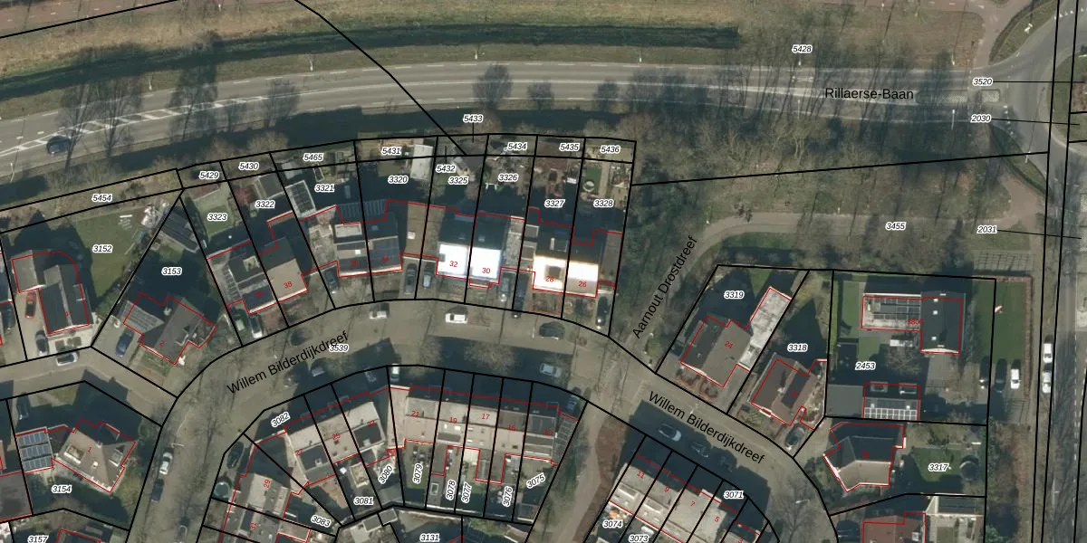 Willem Bilderdijkdreef 28 is gelegen op kadastraal perceel GLE01A3327. Deze kadastrale aanduiding is uniek en wordt gebruikt door het Kadaster om eigendomsrechten en andere zakelijke rechten vast te leggen. Het perceel maakt onderdeel uit van de kadastrale gemeente Goirle.