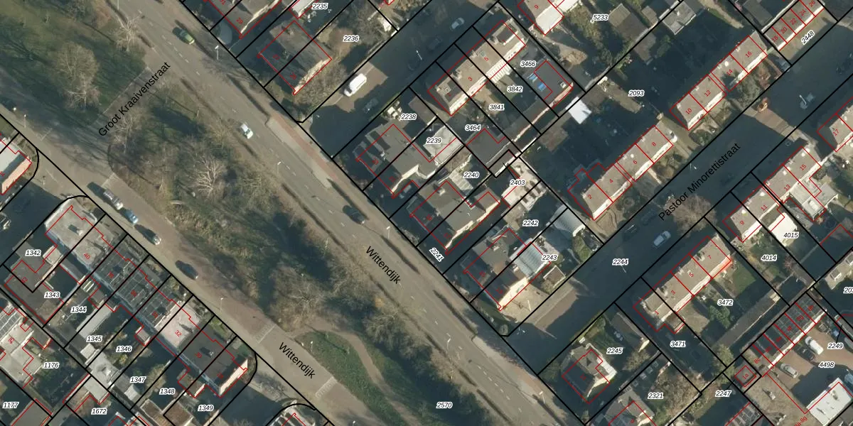 Wittendijk 19 is gelegen op kadastraal perceel GLE01E2240. Deze kadastrale aanduiding is uniek en wordt gebruikt door het Kadaster om eigendomsrechten en andere zakelijke rechten vast te leggen. Het perceel maakt onderdeel uit van de kadastrale gemeente Goirle.