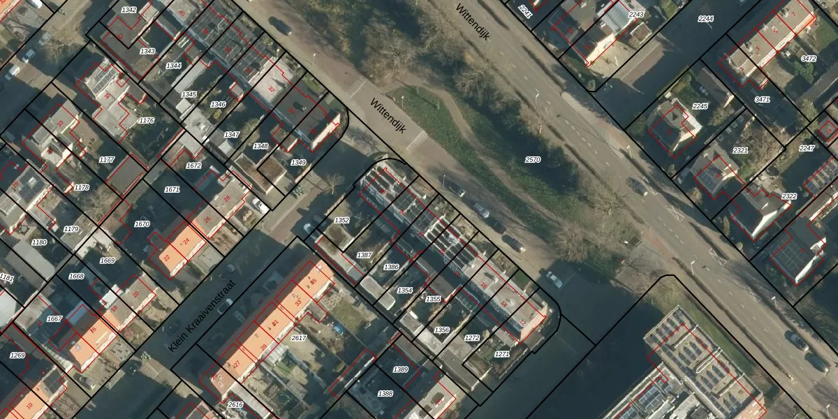 Het perceel waarop Wittendijk 24 staat heeft een oppervlakte van 240 m². Dit is een middelgroot perceel. De perceeloppervlakte wordt geregistreerd door het Kadaster. Gedetailleerde informatie over de maten van dit perceel kunt u vinden in het rapport Kadastrale kaart met maatvoering van Wittendijk 24.