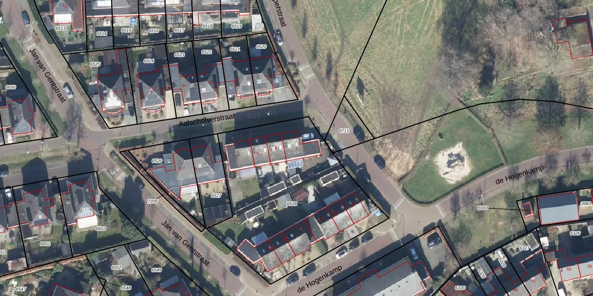 Aalscholverstraat 1 is gelegen op kadastraal perceel GOO00C6528. Deze kadastrale aanduiding is uniek en wordt gebruikt door het Kadaster om eigendomsrechten en andere zakelijke rechten vast te leggen. Het perceel maakt onderdeel uit van de kadastrale gemeente Goor.