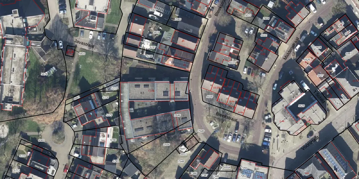 Het perceel waarop Bleekstraat 11 staat heeft een oppervlakte van 1595 m². Dit is een zeer groot perceel. De perceeloppervlakte wordt geregistreerd door het Kadaster. Gedetailleerde informatie over de maten van dit perceel kunt u vinden in het rapport Kadastrale kaart met maatvoering van Bleekstraat 11.