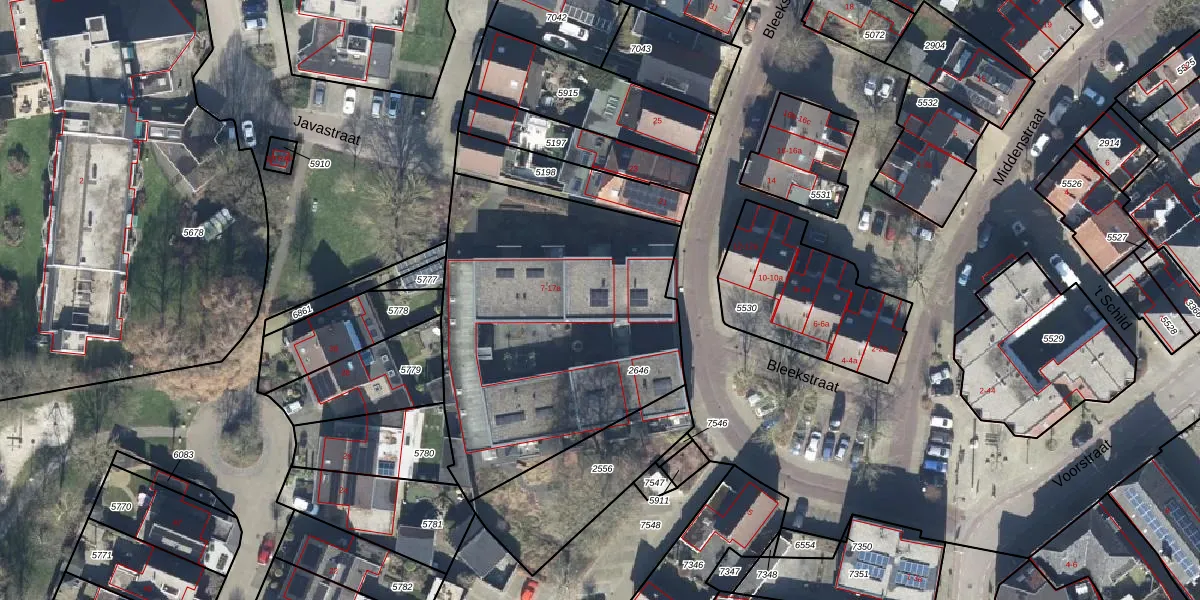 Het perceel waarop Bleekstraat 17-a staat heeft een oppervlakte van 1595 m². Dit is een zeer groot perceel. De perceeloppervlakte wordt geregistreerd door het Kadaster. Gedetailleerde informatie over de maten van dit perceel kunt u vinden in het rapport Kadastrale kaart met maatvoering van Bleekstraat 17-a.
