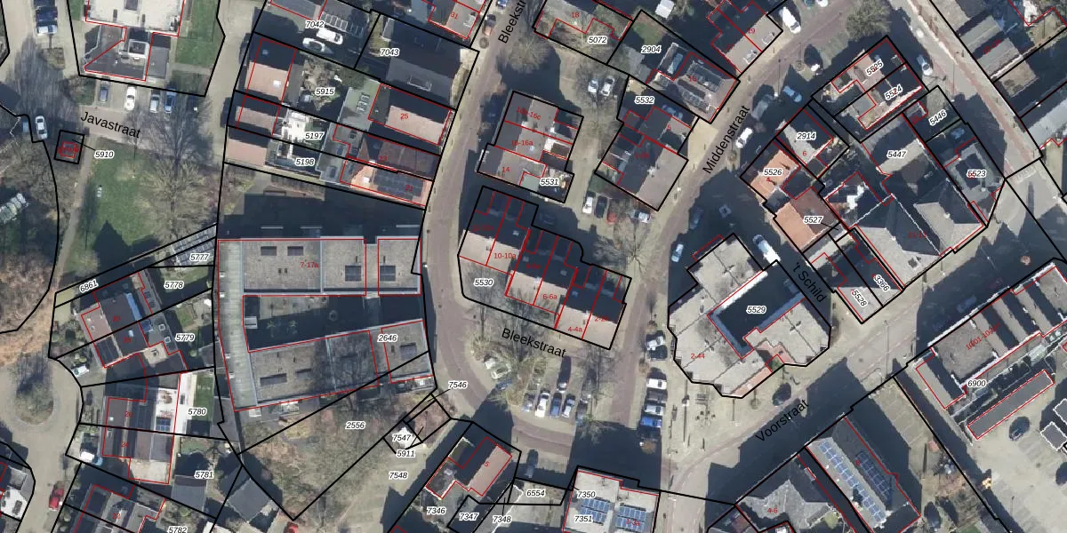 Het perceel waarop Bleekstraat 8 staat heeft een oppervlakte van 542 m². Dit is een groot perceel. De perceeloppervlakte wordt geregistreerd door het Kadaster. Gedetailleerde informatie over de maten van dit perceel kunt u vinden in het rapport Kadastrale kaart met maatvoering van Bleekstraat 8.