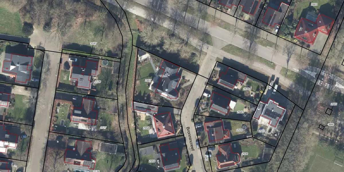 Gebruik de zoekbalk of klik op een perceel voor informatie over de adressen binnen dit perceel.