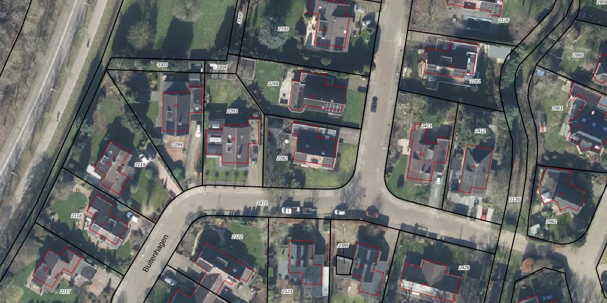 Het perceel waarop Buitenhagen 27 staat heeft een oppervlakte van 668 m². Dit is een groot perceel. De perceeloppervlakte wordt geregistreerd door het Kadaster. Gedetailleerde informatie over de maten van dit perceel kunt u vinden in het rapport Kadastrale kaart met maatvoering van Buitenhagen 27.