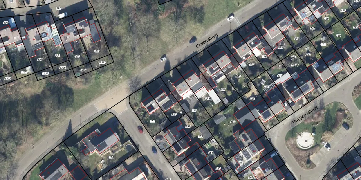 Het perceel waarop Costerstraat 25 staat heeft een oppervlakte van 343 m². Dit is een groot perceel. De perceeloppervlakte wordt geregistreerd door het Kadaster. Gedetailleerde informatie over de maten van dit perceel kunt u vinden in het rapport Kadastrale kaart met maatvoering van Costerstraat 25.