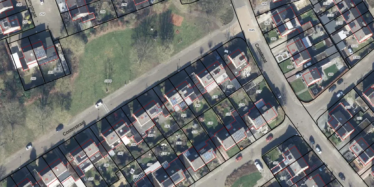 Gebruik de zoekbalk of klik op een perceel voor informatie over de adressen binnen dit perceel.
