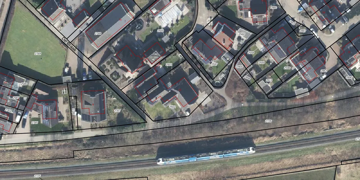 Het perceel waarop De Braak 13 staat heeft een oppervlakte van 806 m². Dit is een groot perceel. De perceeloppervlakte wordt geregistreerd door het Kadaster. Gedetailleerde informatie over de maten van dit perceel kunt u vinden in het rapport Kadastrale kaart met maatvoering van De Braak 13.