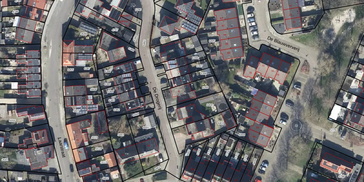 Gebruik de zoekbalk of klik op een perceel voor informatie over de adressen binnen dit perceel.