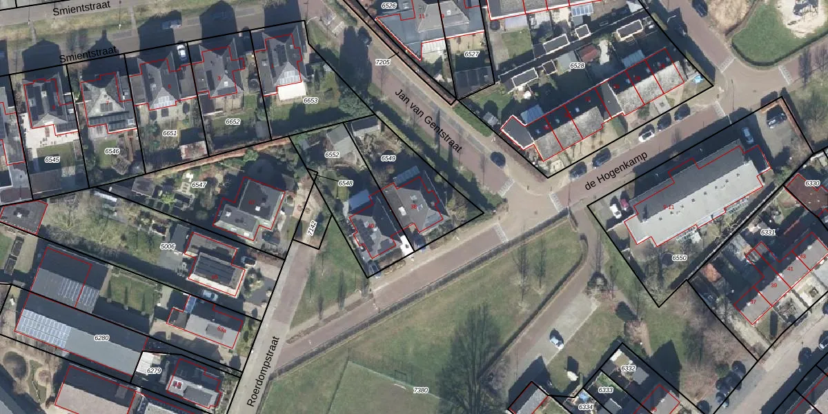 Gebruik de zoekbalk of klik op een perceel voor informatie over de adressen binnen dit perceel.