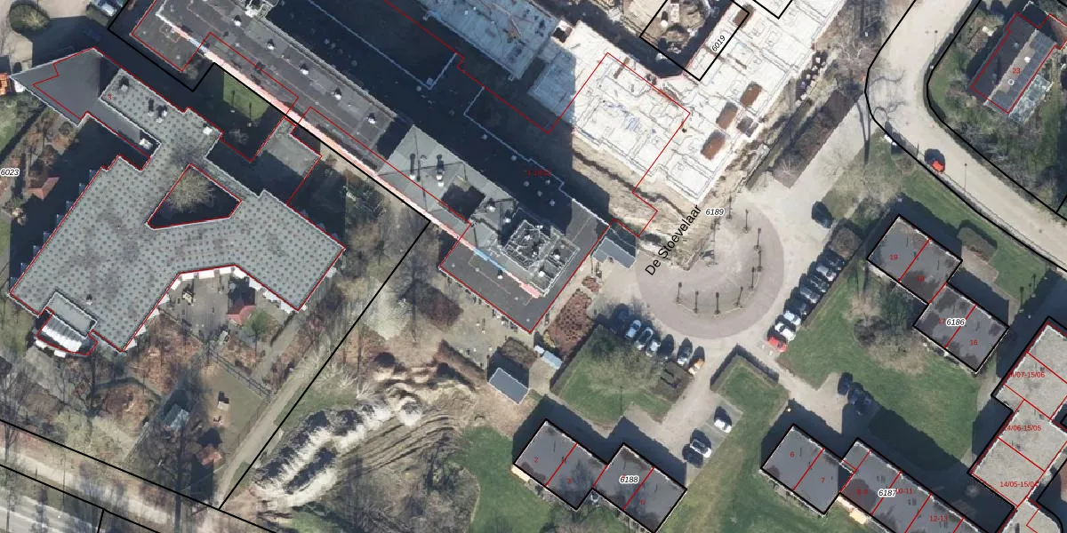 Het perceel waarop De Stoevelaar 1-201 staat heeft een oppervlakte van 2,9 ha. Dit is een zeer groot perceel. De perceeloppervlakte wordt geregistreerd door het Kadaster. Gedetailleerde informatie over de maten van dit perceel kunt u vinden in het rapport Kadastrale kaart met maatvoering van De Stoevelaar 1-201.