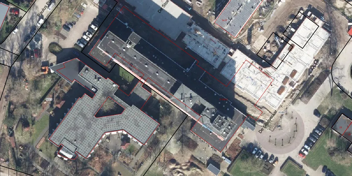 Het perceel waarop De Stoevelaar 1-406 staat heeft een oppervlakte van 2,9 ha. Dit is een zeer groot perceel. De perceeloppervlakte wordt geregistreerd door het Kadaster. Gedetailleerde informatie over de maten van dit perceel kunt u vinden in het rapport Kadastrale kaart met maatvoering van De Stoevelaar 1-406.