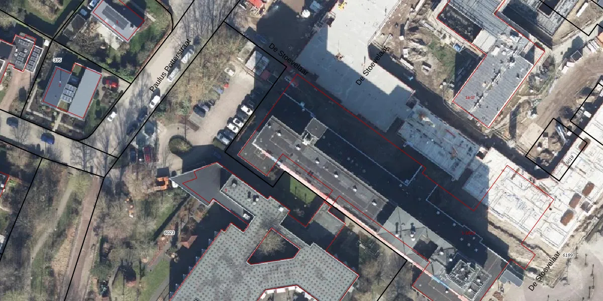 Het perceel waarop De Stoevelaar 1-411 staat heeft een oppervlakte van 2,9 ha. Dit is een zeer groot perceel. De perceeloppervlakte wordt geregistreerd door het Kadaster. Gedetailleerde informatie over de maten van dit perceel kunt u vinden in het rapport Kadastrale kaart met maatvoering van De Stoevelaar 1-411.