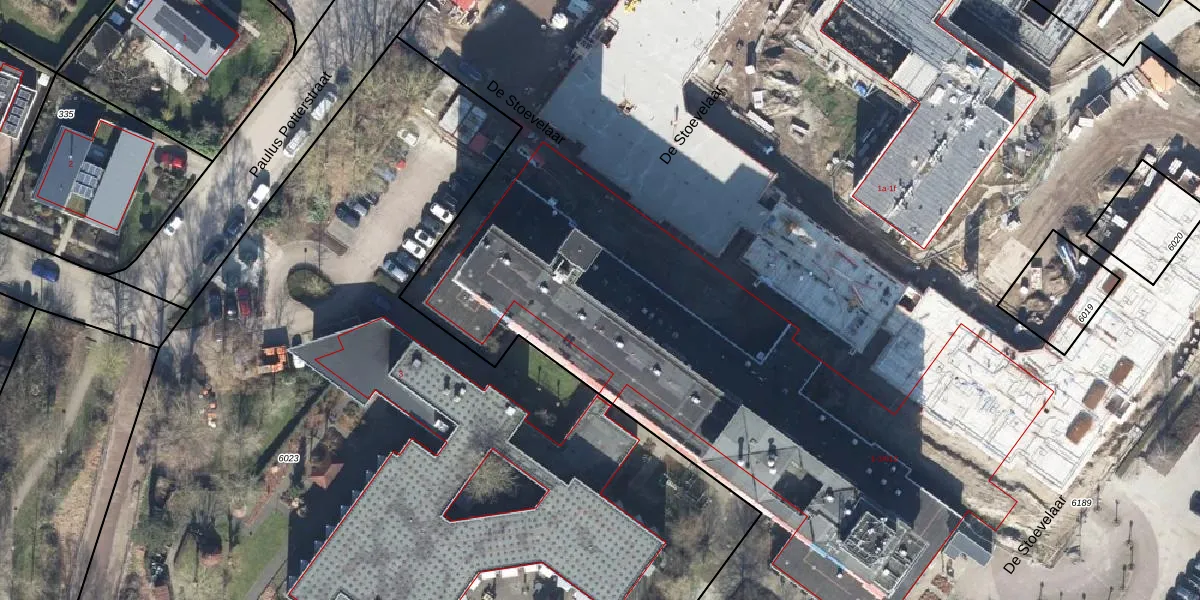 Het perceel waarop De Stoevelaar 1-610 staat heeft een oppervlakte van 2,9 ha. Dit is een zeer groot perceel. De perceeloppervlakte wordt geregistreerd door het Kadaster. Gedetailleerde informatie over de maten van dit perceel kunt u vinden in het rapport Kadastrale kaart met maatvoering van De Stoevelaar 1-610.