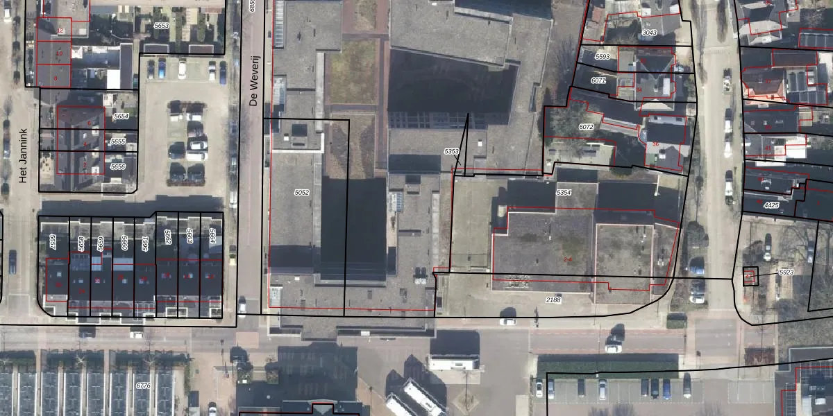 Het perceel waarop De Weverij 46 staat heeft een oppervlakte van 5618 m². Dit is een zeer groot perceel. De perceeloppervlakte wordt geregistreerd door het Kadaster. Gedetailleerde informatie over de maten van dit perceel kunt u vinden in het rapport Kadastrale kaart met maatvoering van De Weverij 46.
