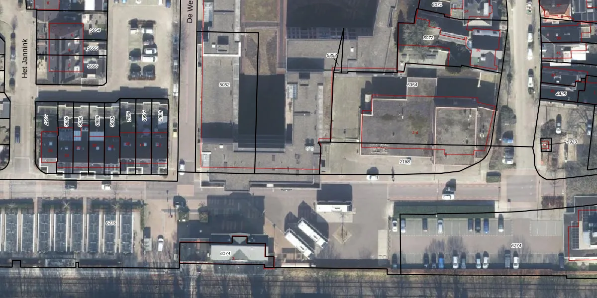 Het perceel waarop De Weverij 80 staat heeft een oppervlakte van 5618 m². Dit is een zeer groot perceel. De perceeloppervlakte wordt geregistreerd door het Kadaster. Gedetailleerde informatie over de maten van dit perceel kunt u vinden in het rapport Kadastrale kaart met maatvoering van De Weverij 80.