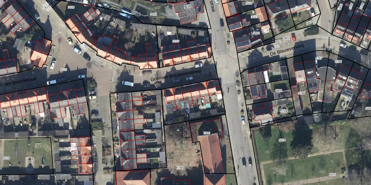 Goeman Borgesiusstraat 7 is gelegen op kadastraal perceel GOO00C2211. Deze kadastrale aanduiding is uniek en wordt gebruikt door het Kadaster om eigendomsrechten en andere zakelijke rechten vast te leggen. Het perceel maakt onderdeel uit van de kadastrale gemeente Goor.