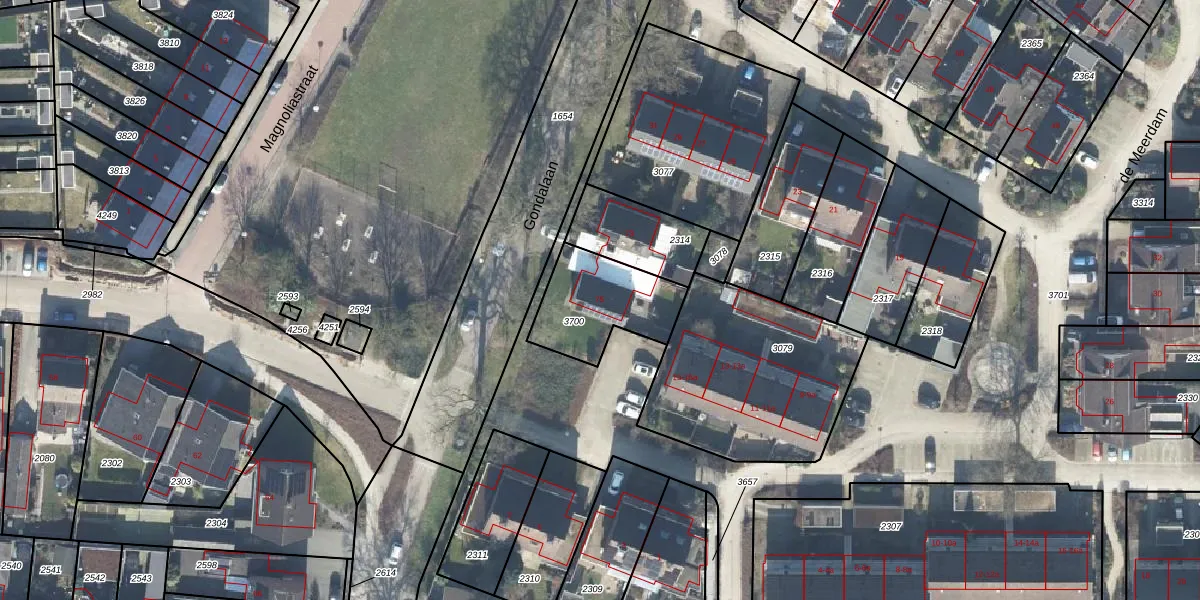 Het perceel waarop Gondalaan 75 staat heeft een oppervlakte van 320 m². Dit is een groot perceel. De perceeloppervlakte wordt geregistreerd door het Kadaster. Gedetailleerde informatie over de maten van dit perceel kunt u vinden in het rapport Kadastrale kaart met maatvoering van Gondalaan 75.