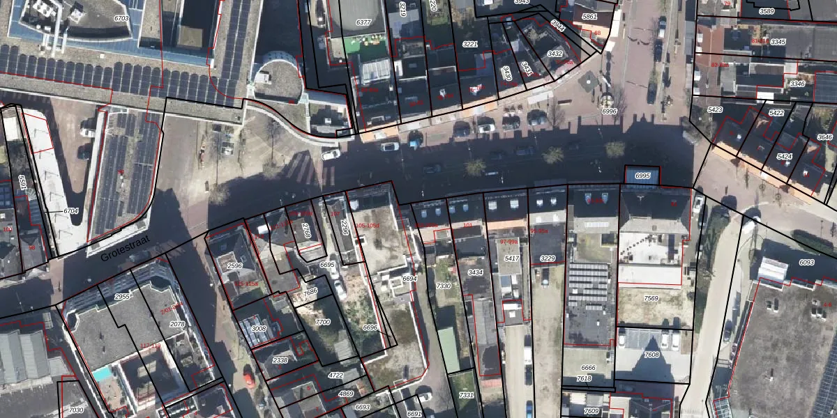 Grotestraat 103 is gelegen op kadastraal perceel GOO00C7330. Deze kadastrale aanduiding is uniek en wordt gebruikt door het Kadaster om eigendomsrechten en andere zakelijke rechten vast te leggen. Het perceel maakt onderdeel uit van de kadastrale gemeente Goor.