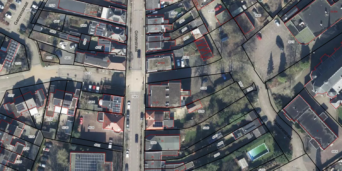 Grotestraat 21 is gelegen op kadastraal perceel GOO00C5184. Deze kadastrale aanduiding is uniek en wordt gebruikt door het Kadaster om eigendomsrechten en andere zakelijke rechten vast te leggen. Het perceel maakt onderdeel uit van de kadastrale gemeente Goor.