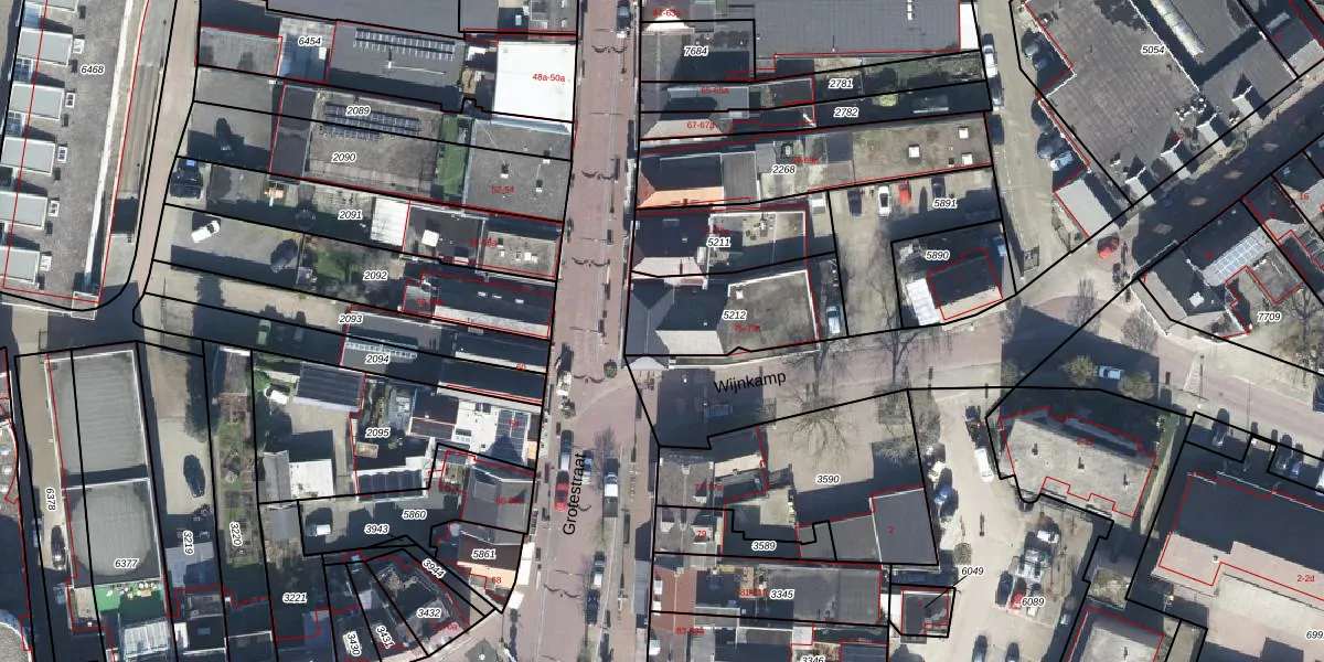 Grotestraat 75-b is gelegen op kadastraal perceel GOO00C5212. Deze kadastrale aanduiding is uniek en wordt gebruikt door het Kadaster om eigendomsrechten en andere zakelijke rechten vast te leggen. Het perceel maakt onderdeel uit van de kadastrale gemeente Goor.
