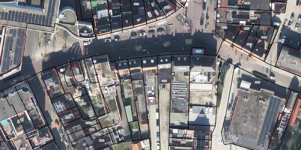 Het perceel waarop Grotestraat 97 staat heeft een oppervlakte van 699 m². Dit is een groot perceel. De perceeloppervlakte wordt geregistreerd door het Kadaster. Gedetailleerde informatie over de maten van dit perceel kunt u vinden in het rapport Kadastrale kaart met maatvoering van Grotestraat 97.