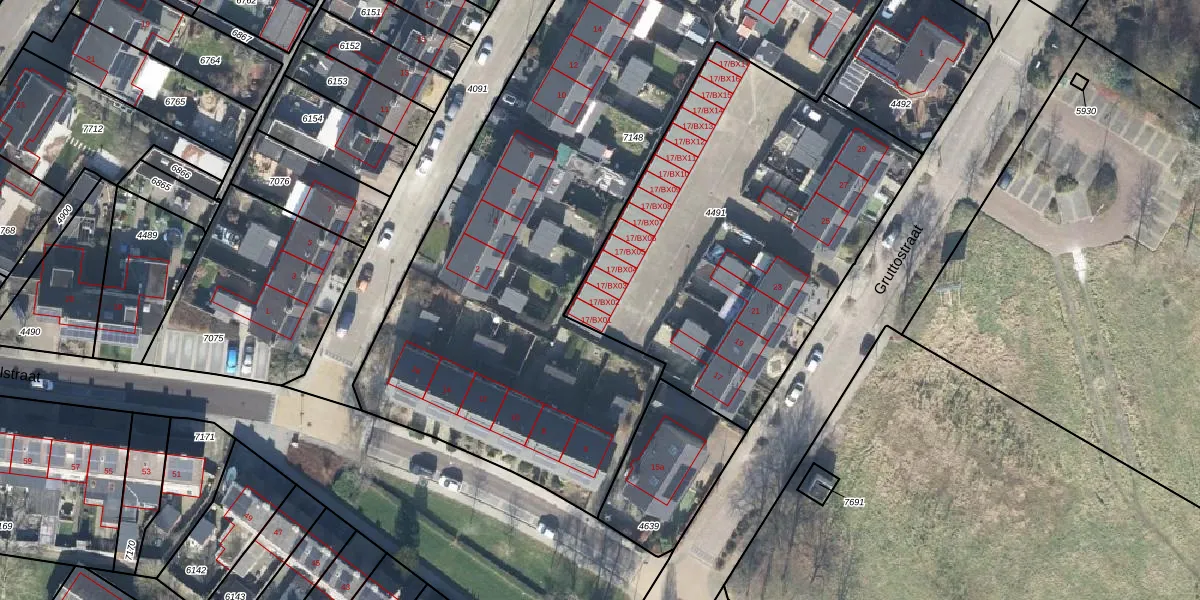 Gruttostraat 17-BX02 is gelegen op kadastraal perceel GOO00C4491. Deze kadastrale aanduiding is uniek en wordt gebruikt door het Kadaster om eigendomsrechten en andere zakelijke rechten vast te leggen. Het perceel maakt onderdeel uit van de kadastrale gemeente Goor.