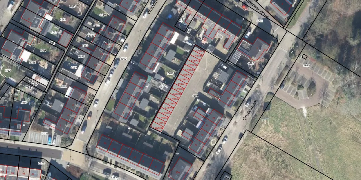 Gruttostraat 17-BX09 is gelegen op kadastraal perceel GOO00C4491. Deze kadastrale aanduiding is uniek en wordt gebruikt door het Kadaster om eigendomsrechten en andere zakelijke rechten vast te leggen. Het perceel maakt onderdeel uit van de kadastrale gemeente Goor.