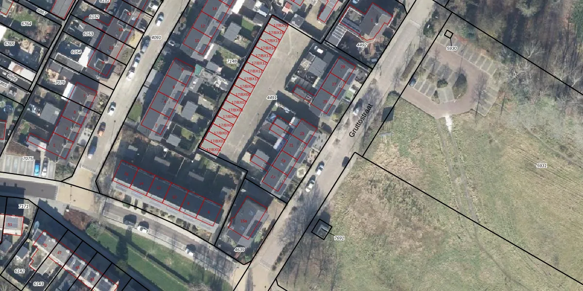 Gruttostraat 21 is gelegen op kadastraal perceel GOO00C4491. Deze kadastrale aanduiding is uniek en wordt gebruikt door het Kadaster om eigendomsrechten en andere zakelijke rechten vast te leggen. Het perceel maakt onderdeel uit van de kadastrale gemeente Goor.