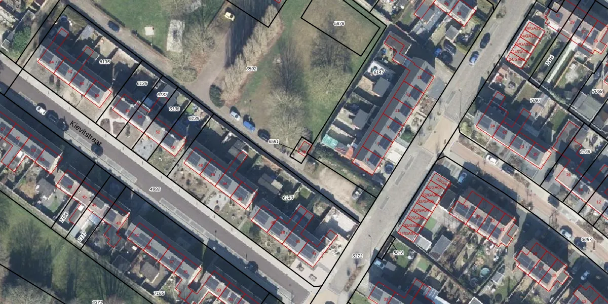 Gebruik de zoekbalk of klik op een perceel voor informatie over de adressen binnen dit perceel.