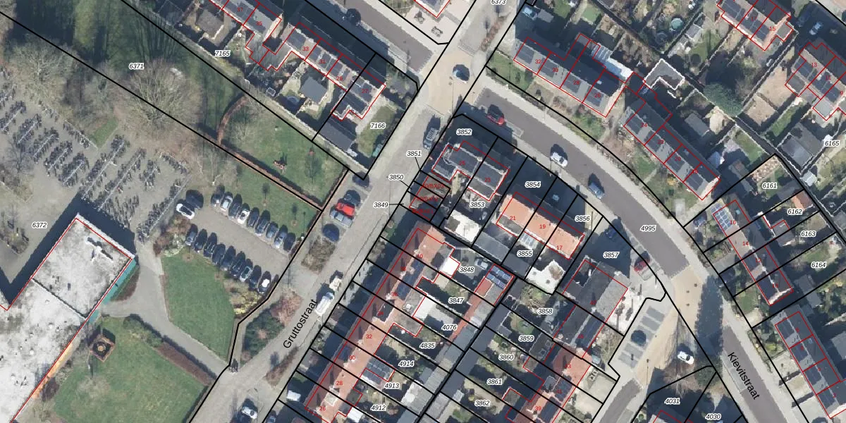 Gebruik de zoekbalk of klik op een perceel voor informatie over de adressen binnen dit perceel.