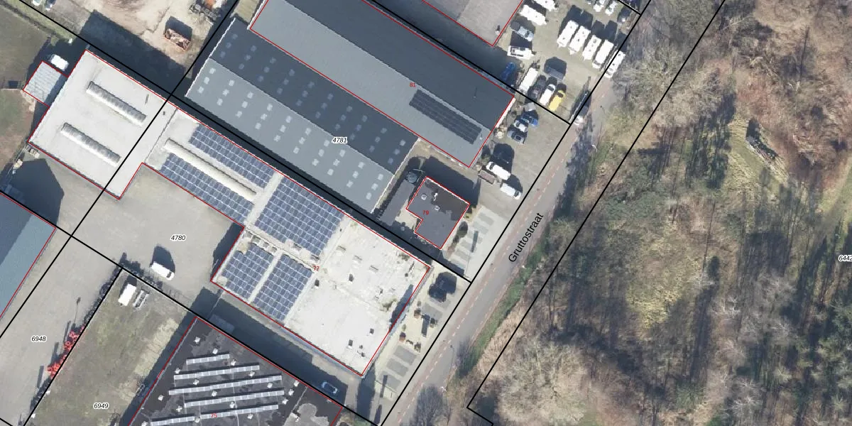 Het perceel waarop Gruttostraat 79 staat heeft een oppervlakte van 3610 m². Dit is een zeer groot perceel. De perceeloppervlakte wordt geregistreerd door het Kadaster. Gedetailleerde informatie over de maten van dit perceel kunt u vinden in het rapport Kadastrale kaart met maatvoering van Gruttostraat 79.
