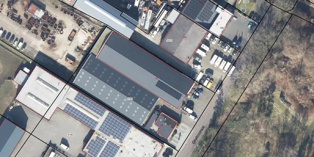 Gruttostraat 81 is gelegen op kadastraal perceel GOO00C4781. Deze kadastrale aanduiding is uniek en wordt gebruikt door het Kadaster om eigendomsrechten en andere zakelijke rechten vast te leggen. Het perceel maakt onderdeel uit van de kadastrale gemeente Goor.