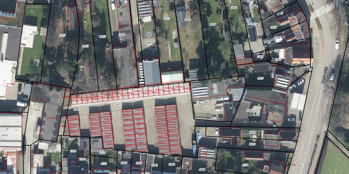 Iependijk 64-BX08 is gelegen op kadastraal perceel GOO00C5877. Deze kadastrale aanduiding is uniek en wordt gebruikt door het Kadaster om eigendomsrechten en andere zakelijke rechten vast te leggen. Het perceel maakt onderdeel uit van de kadastrale gemeente Goor.