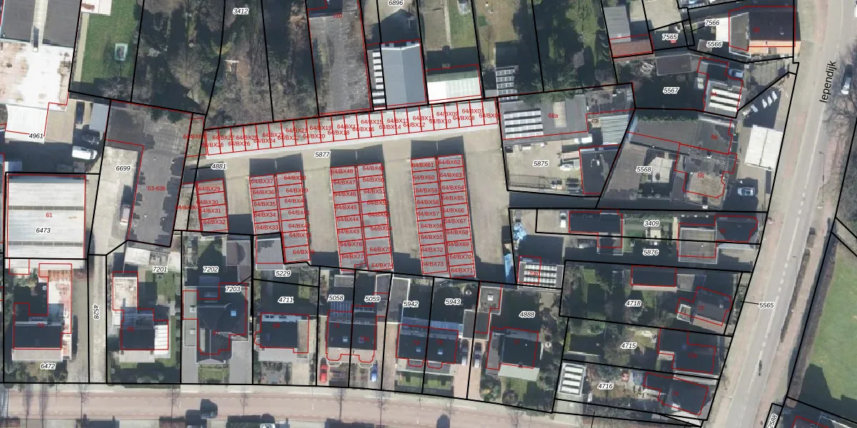 Iependijk 64-BX57 is gelegen op kadastraal perceel GOO00C5877. Deze kadastrale aanduiding is uniek en wordt gebruikt door het Kadaster om eigendomsrechten en andere zakelijke rechten vast te leggen. Het perceel maakt onderdeel uit van de kadastrale gemeente Goor.