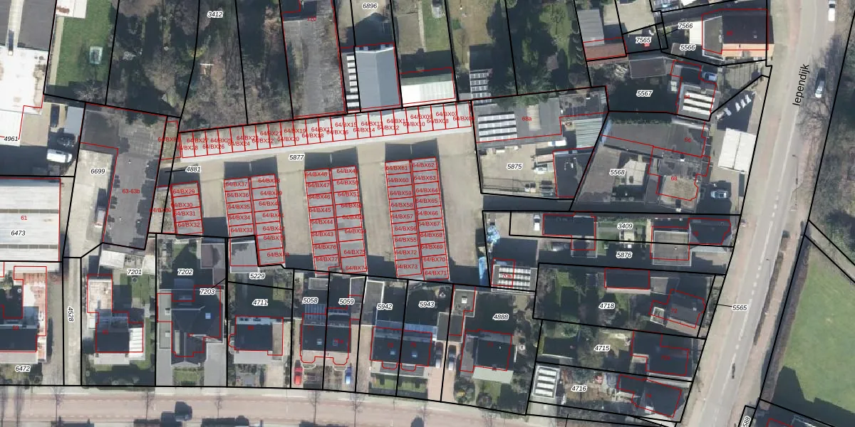 Iependijk 64-BX66 is gelegen op kadastraal perceel GOO00C5877. Deze kadastrale aanduiding is uniek en wordt gebruikt door het Kadaster om eigendomsrechten en andere zakelijke rechten vast te leggen. Het perceel maakt onderdeel uit van de kadastrale gemeente Goor.