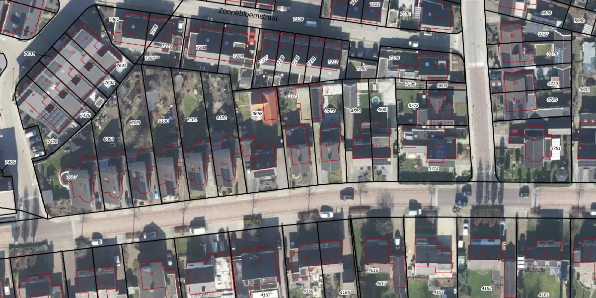 Gebruik de zoekbalk of klik op een perceel voor informatie over de adressen binnen dit perceel.