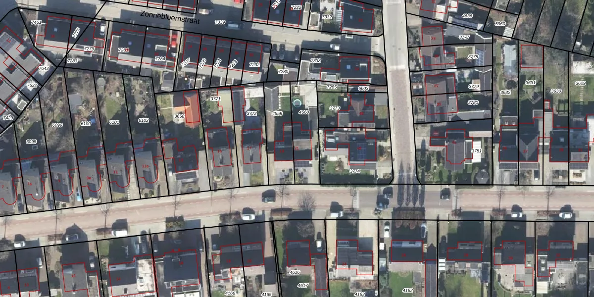 Gebruik de zoekbalk of klik op een perceel voor informatie over de adressen binnen dit perceel.