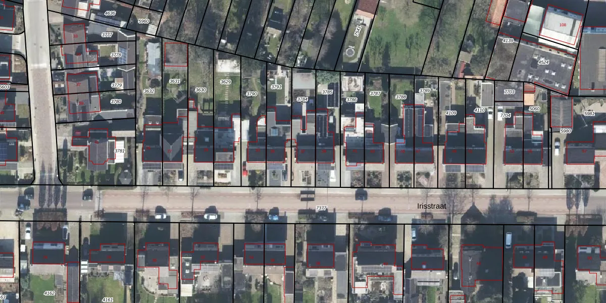 Irisstraat 37 is gelegen op kadastraal perceel GOO00C3784. Deze kadastrale aanduiding is uniek en wordt gebruikt door het Kadaster om eigendomsrechten en andere zakelijke rechten vast te leggen. Het perceel maakt onderdeel uit van de kadastrale gemeente Goor.