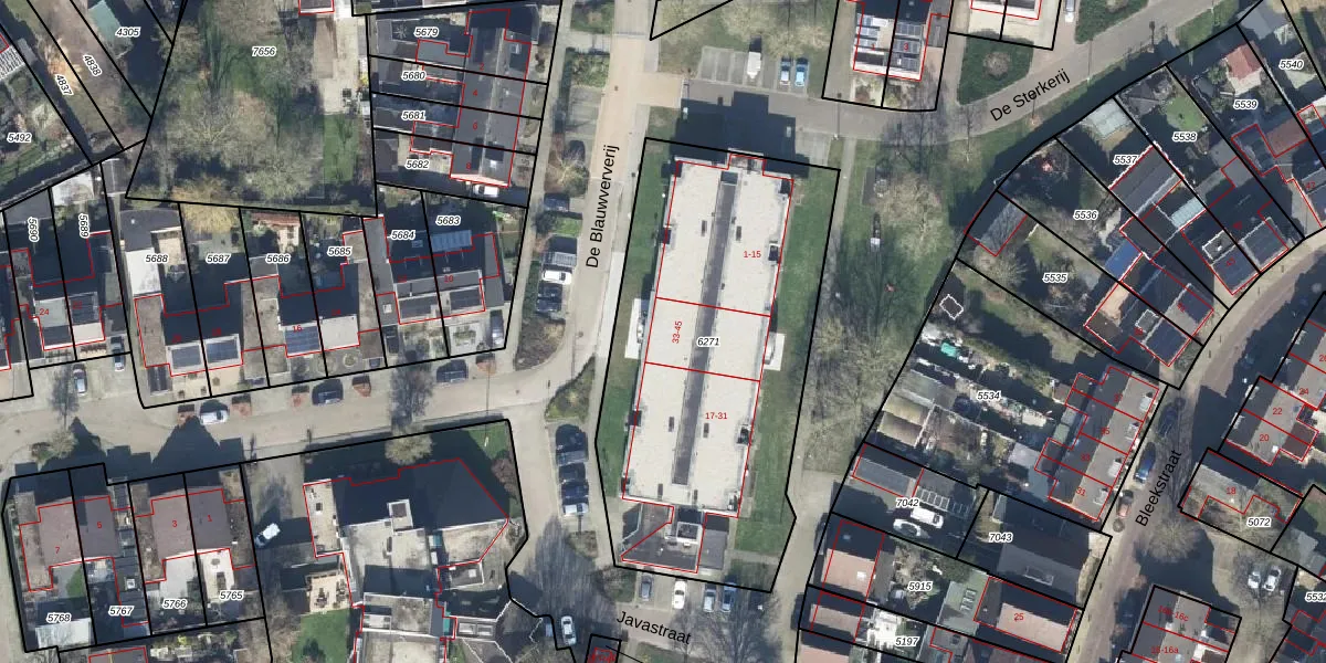 Javastraat 33 is gelegen op kadastraal perceel GOO00C6271. Deze kadastrale aanduiding is uniek en wordt gebruikt door het Kadaster om eigendomsrechten en andere zakelijke rechten vast te leggen. Het perceel maakt onderdeel uit van de kadastrale gemeente Goor.