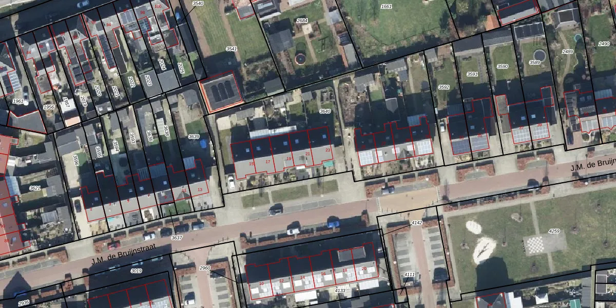 J.M. de Bruijnstraat 21 is gelegen op kadastraal perceel GOO00A3640. Deze kadastrale aanduiding is uniek en wordt gebruikt door het Kadaster om eigendomsrechten en andere zakelijke rechten vast te leggen. Het perceel maakt onderdeel uit van de kadastrale gemeente Goor.